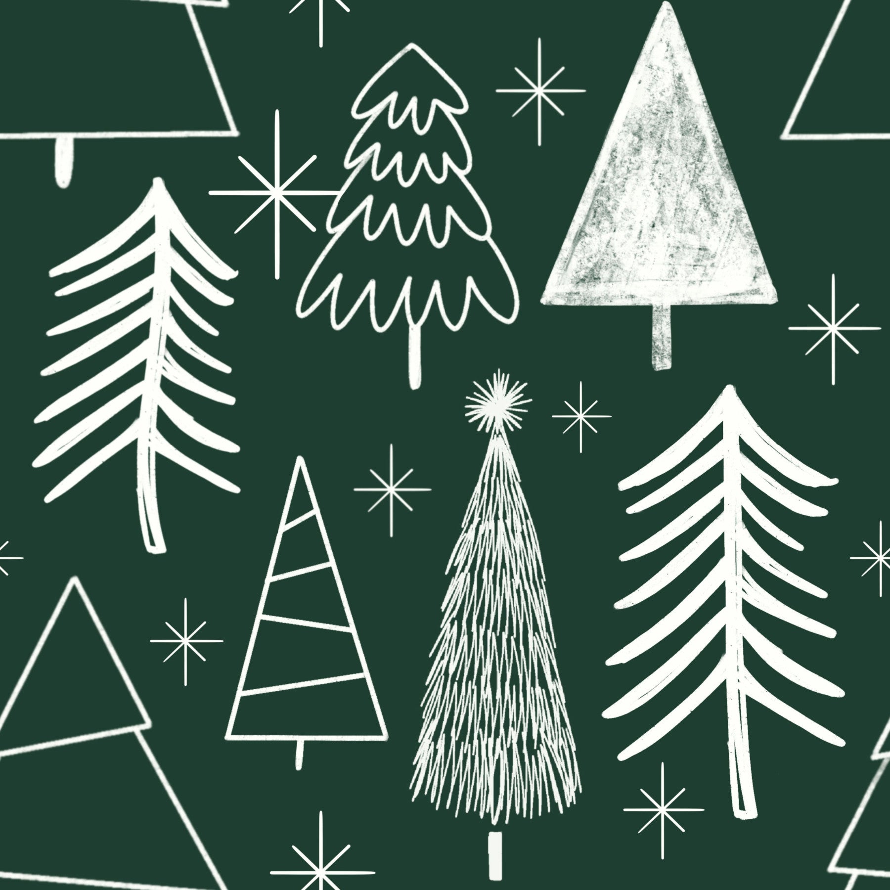 Starry Evergreen pattern featuring various unique Christmas tree shapes.