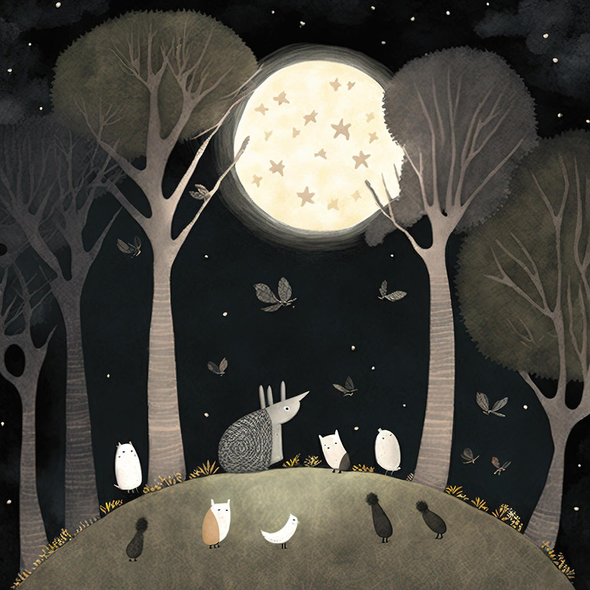 Consider a nursery where, under a star-studded sky, every wall tells tales of friendship. The starry night wallpaper shall fulfil such a dream, a scene to captivate hearts and inspire imaginations. With softly glowing stars and silhouettes of friends, who could wish for anything more as they drift off into the night? Nighttime must black out and be fashioned into time for young minds to explore the wonders of friendship while soaring through the magic of the night sky, designed for study, relaxation, and dreaming the sweetest dreams at night's fall: - Starry Night.