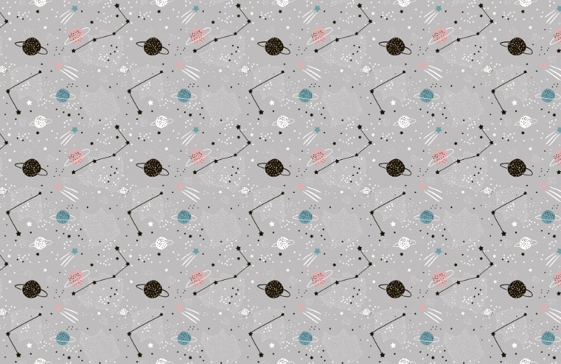 Dramatis Personae nursery wallpaper, grey stars, and planets add a whimsical touch to your kid's space. It is ideally suited as a romantic background for many bedtime stories and a fun addition to typical day play. It was designed to tickle young imaginations and its whimsical pattern of a daytime sky. Every star and planet emits a muted, delicate color ideal for your child's fallow and creative play space. A perfect nursery wallpaper for any theme, this wallpaper is easy but imaginative and will go with various decorative styles in your home.