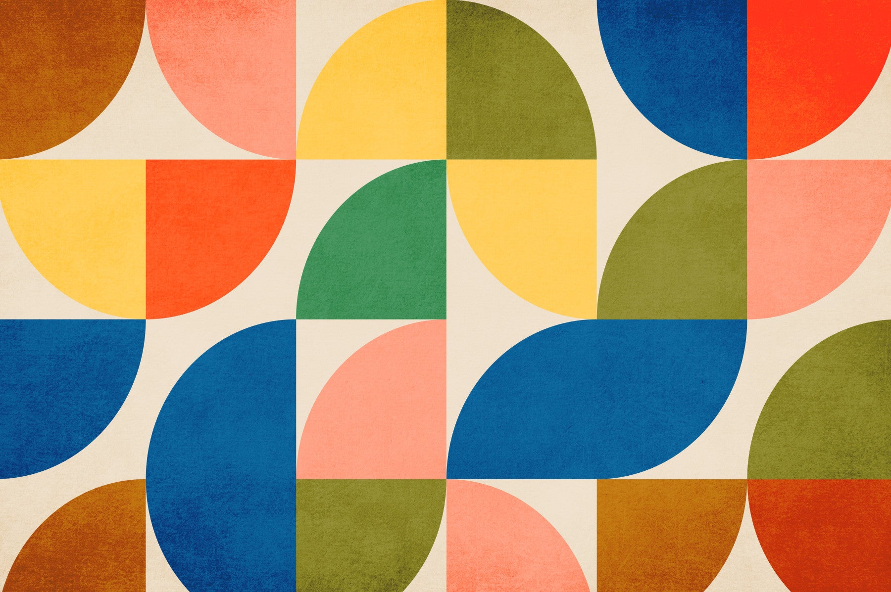 Evoking the clean lines and vibrant spirit of Swedish design, Stockholm is a captivating wallpaper featuring a harmonious arrangement of geometric shapes. This artful composition uses a modern palette of warm earthy tones combined with cool blues and bright yellows, reminiscent of the city's architecture and natural surroundings. The design skillfully balances circular forms and structured squares, creating a dynamic yet soothing visual rhythm. The subtle texture adds depth, lending a tactile quality to the smooth, geometric shapes. Inspired by the iconic mid-century modern aesthetic that Stockholm helped define, this wallpaper brings a touch of Scandinavian simplicity and timeless elegance to any space, perfect for adding a sophisticated and artistic flair to your digital world. It's a minimalist masterpiece with maximalist impact.