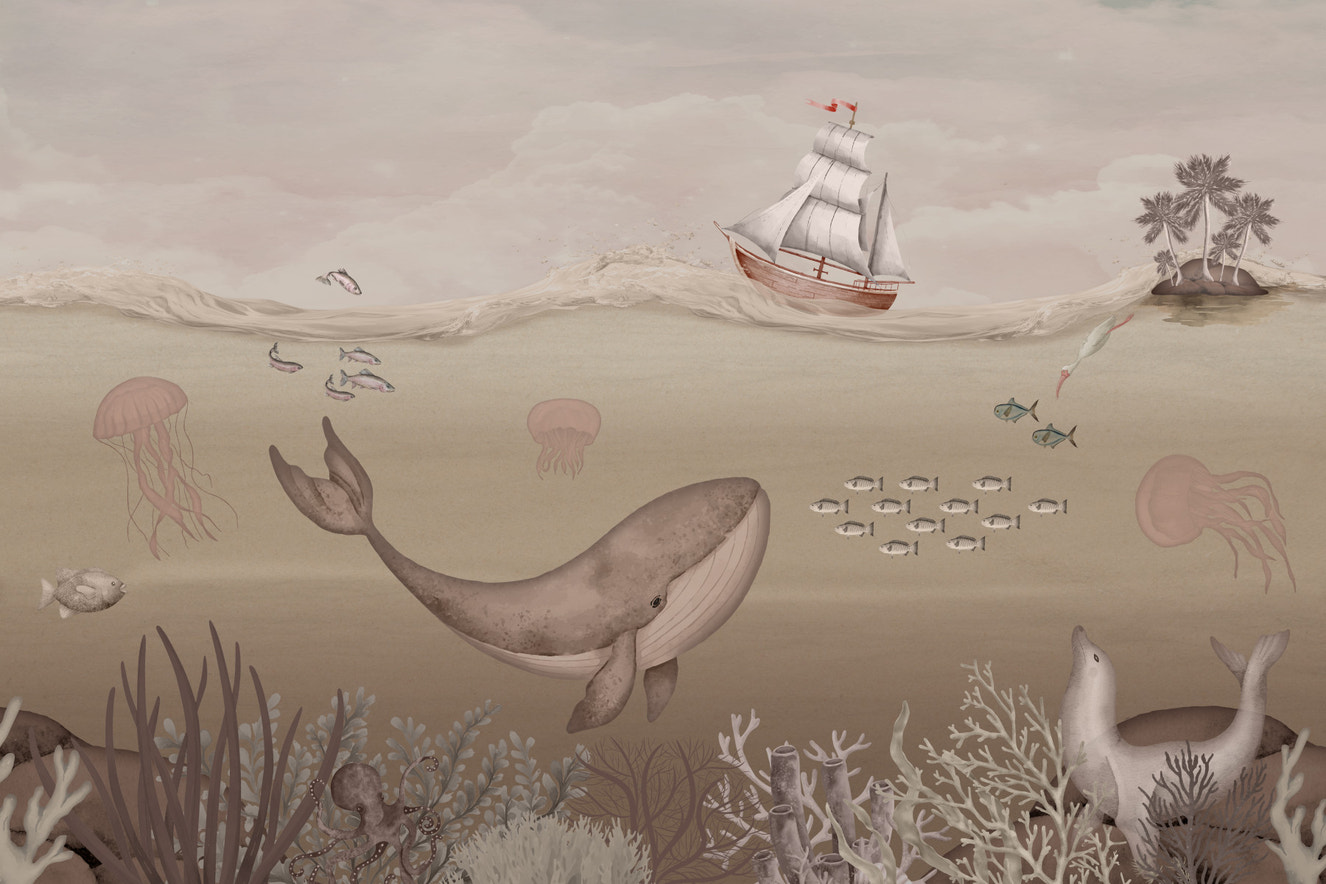 Experience the drama of the high seas with this striking image. Sailing ships battle a ferocious storm, complete with towering waves and flashes of lightning. The neutral tones and dramatic composition make this wallpaper for walls an excellent choice for a living room, office, or bedroom. Its stark contrast and detailed imagery add a touch of adventure to any room. It complements nautical or vintage interiors and adds a dynamic accent.
