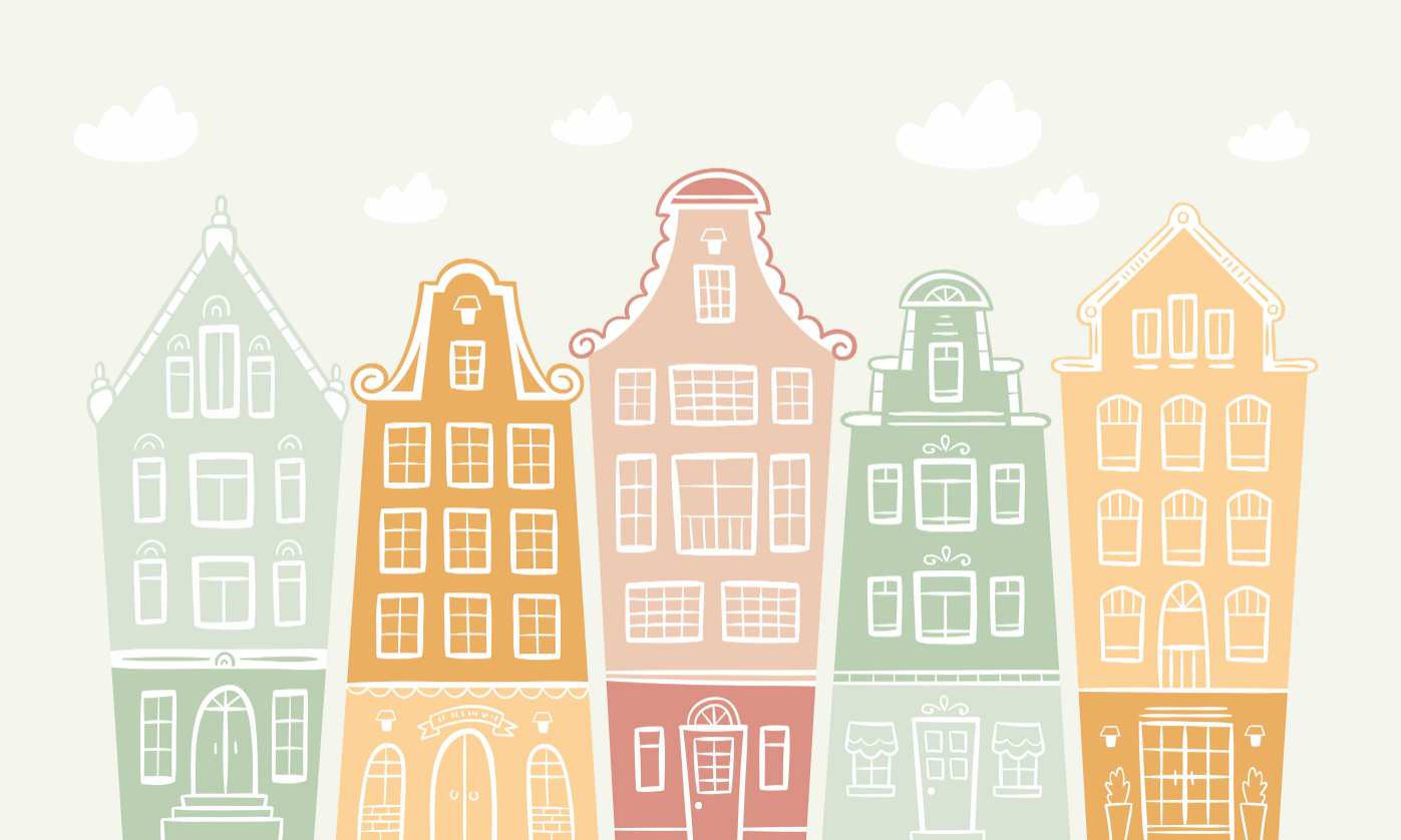 Pastel wallpaper murals with fun building designs