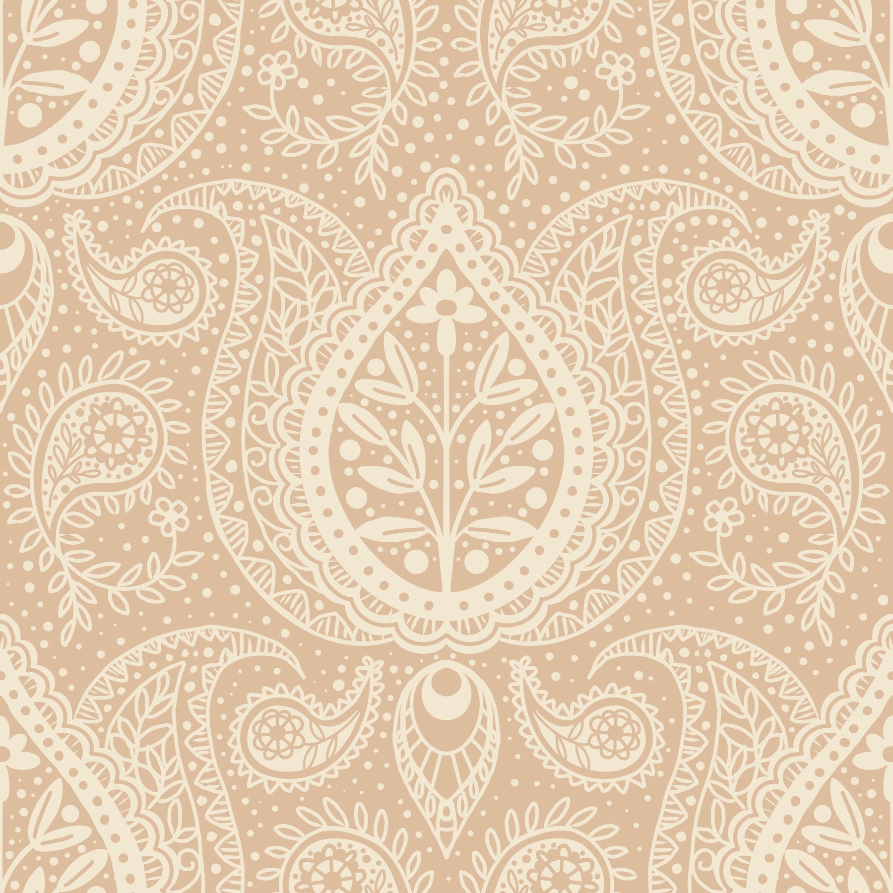 Indulge in the serene elegance of "Subtle Botanical Paisley," a wallpaper design that seamlessly blends the classic paisley pattern with delicate botanical motifs. Creamy off-white paisley shapes dance gracefully against a warm, muted beige backdrop. The intricate details, featuring stylized leaves and flowers, create a sophisticated and understated aesthetic. This wallpaper offers a calming and refined ambiance, perfect for adding a touch of understated luxury to any space. Its gentle color palette and subtle patterns make it effortlessly adaptable to various design styles, from minimalist to bohemian.