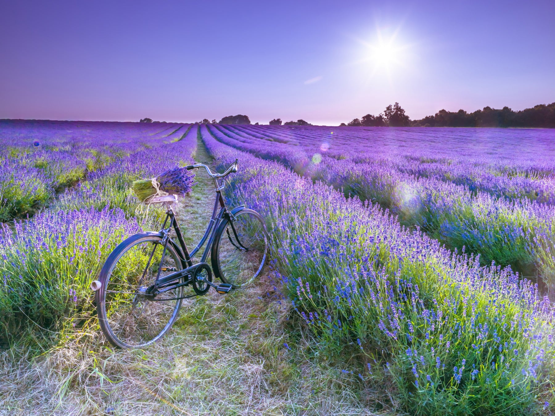Sunlit Lavender Escape Wall Mural for a professional reception area wallpaper.