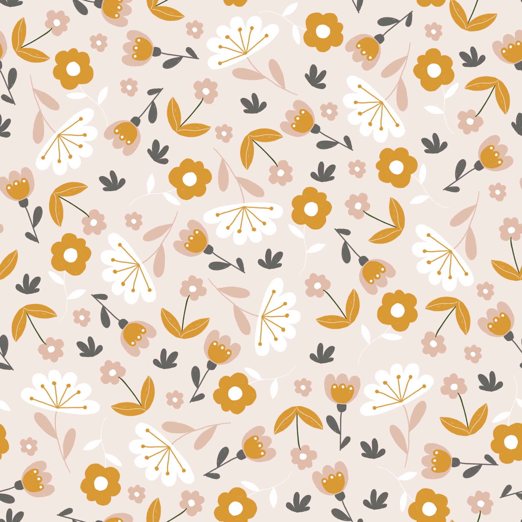 Rhythmic repeating Sunny Day Blooms Wallpaper design backdrop.