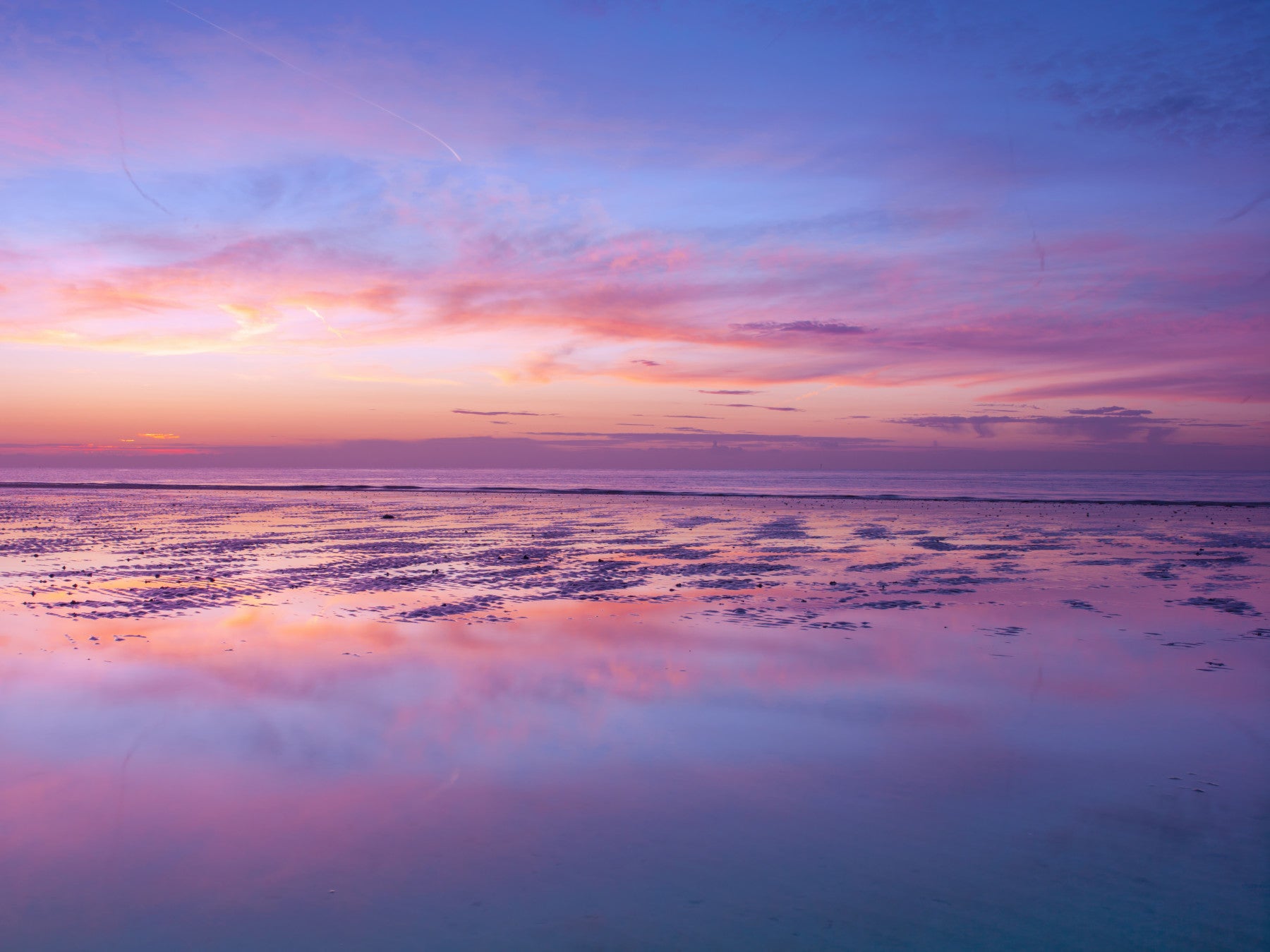 Sunrise at beach, Littlehampton England. Bathed in the ethereal glow of dawn, this wall decor captures the tranquil magic of "Sunrise at Beach." Soft hues of pastel pink and lavender blend seamlessly with the cool blues of the waking sky, reflecting perfectly on the wet, rippled sand below. The horizon line gently separates the dreamy sky from its mirrored image on the shore, creating a sense of infinite peace and calm. This stunning vista offers a serene escape, bringing the gentle beauty of a coastal sunrise into your living space. Imagine waking up every day to the soft, calming colors of this tranquil scene, transforming any room into a sanctuary of peace and quiet reflection.