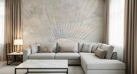 Embrace the gentle light of dawn with this sunrise-inspired design. Thin lines radiate above a half-circle, evoking a sense of warmth. Hues of light pink, blue, and beige blend with a textured marble effect. This wallpaper for walls infuses calm into any space. It's ideal for bedrooms and living rooms where you want to create a serene, inviting atmosphere. Let this design brighten your interiors and bring a unique charm to your home decor.