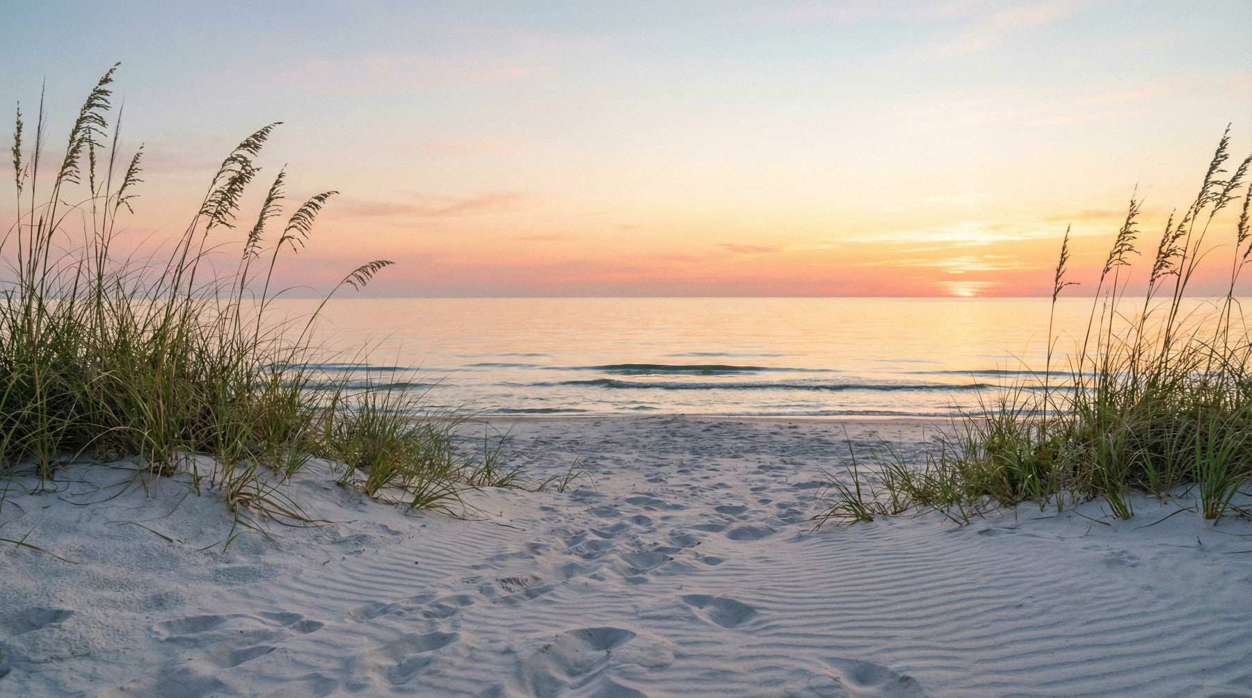 Bring the tranquility of the ocean into your home. This elegant wallpaper for walls captures a breathtaking sunrise over a calm sea, framed by gentle dunes and beach grasses. The soft, muted color palette of blush pinks, golds, and subtle blues creates a serene and relaxing atmosphere. Enhance your bedroom, bathroom, or hallway with this design. This design adds a sophisticated touch, making any space feel more spacious and inviting. Evoke a sense of calm and beauty with this coastal scene.