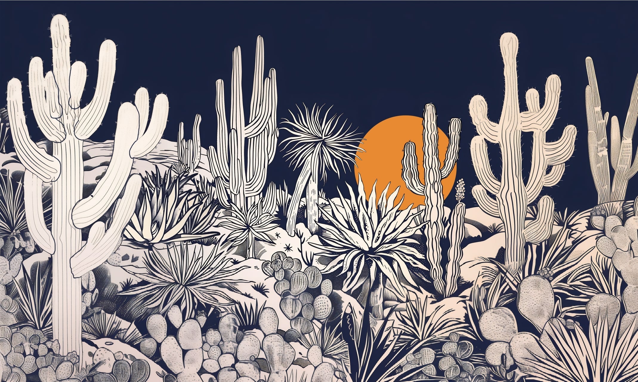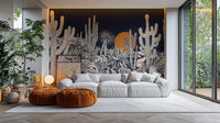 Step into the vast beauty of the desert with Sunset Showpieces Desert Landscape Wallpaper. This hand-illustrated design features intricate cacti, agave shops, and desert foliage bathed in the gleam of a golden evening. The rich cortege background contrasts beautifully with the warm faceless and orange tones, adding depth and rustic charm. Perfect for Southwestern, countercultures, or miscellaneous innards, this wallpaper is a homage to nature’s adaptability and the dateless appeal of desert geographies.