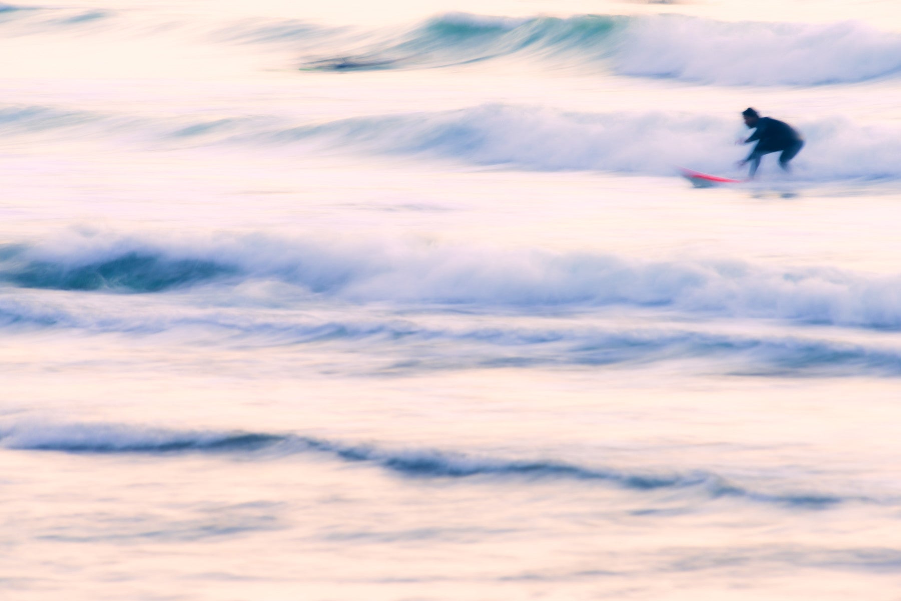 Immerse yourself in the tranquil beauty of Surf #2 a captivating wallpaper that evokes the essence of a serene surf session. This image features a lone surfer gracefully gliding across a series of gentle waves, captured with a soft, blurred effect that lends an ethereal quality to the scene. The pastel hues of the water, ranging from pale blues to delicate pinks, create a calming and dreamlike atmosphere, perfect for bringing a touch of coastal serenity to your digital space. The deliberate blur emphasizes the motion and flow of the water, inviting viewers to get lost in the rhythm of the ocean. This wallpaper is ideal for those seeking a peaceful and visually stimulating background that inspires a sense of calm and wonder.