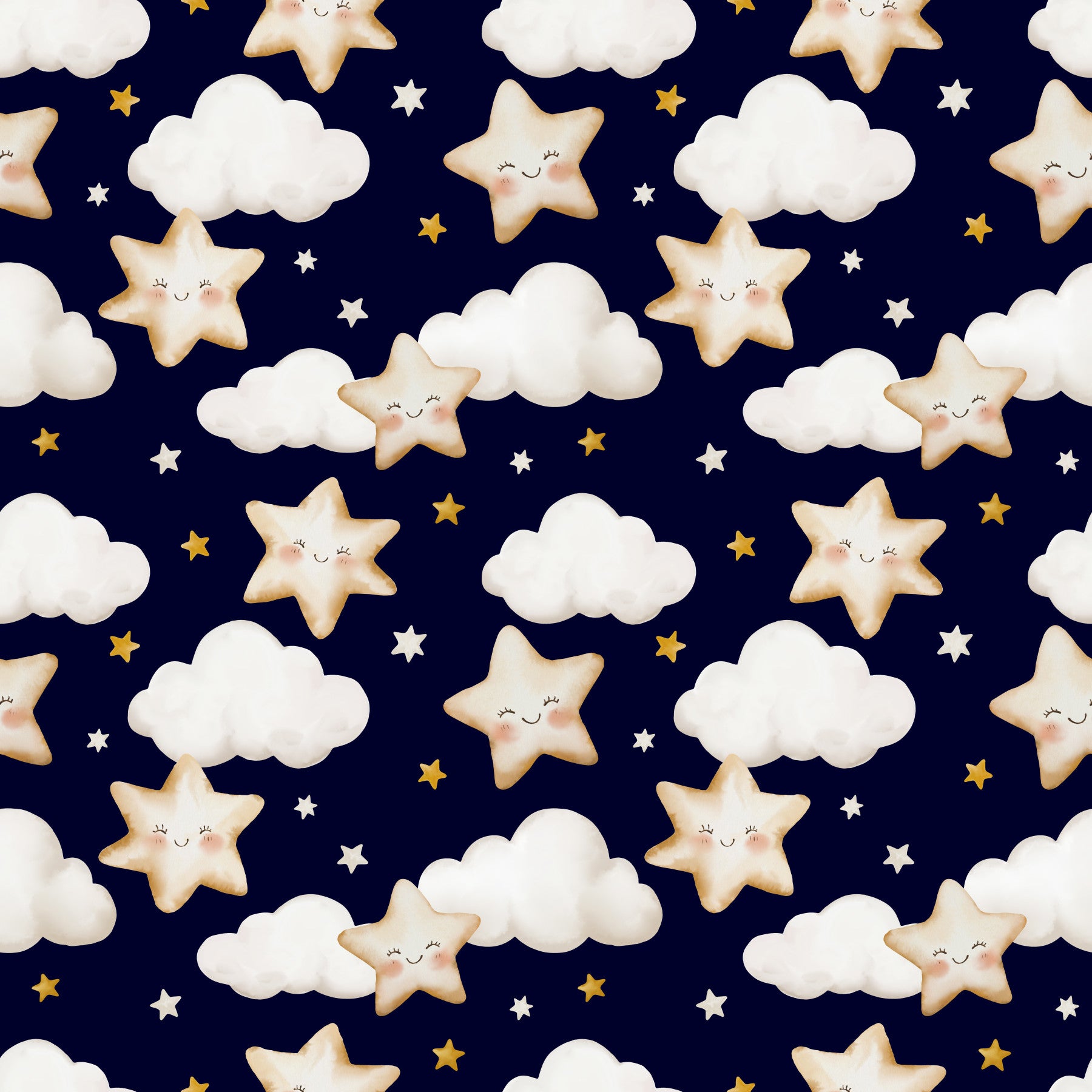 Cute stars and clouds on Sweet Dreams Starry Sky Wallpaper.
