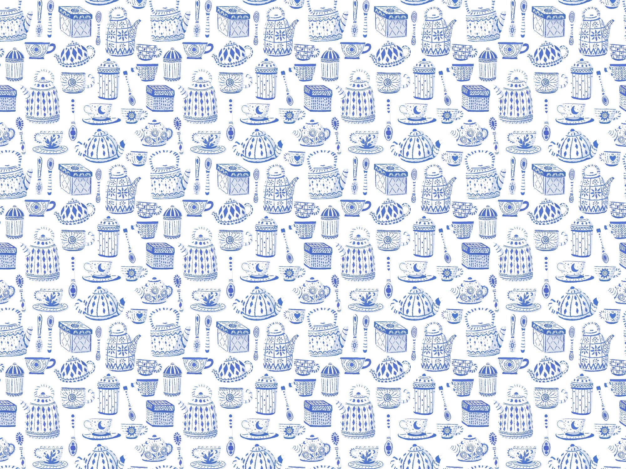 Blue tea set wallpaper for a touch of elegance in interiors.
