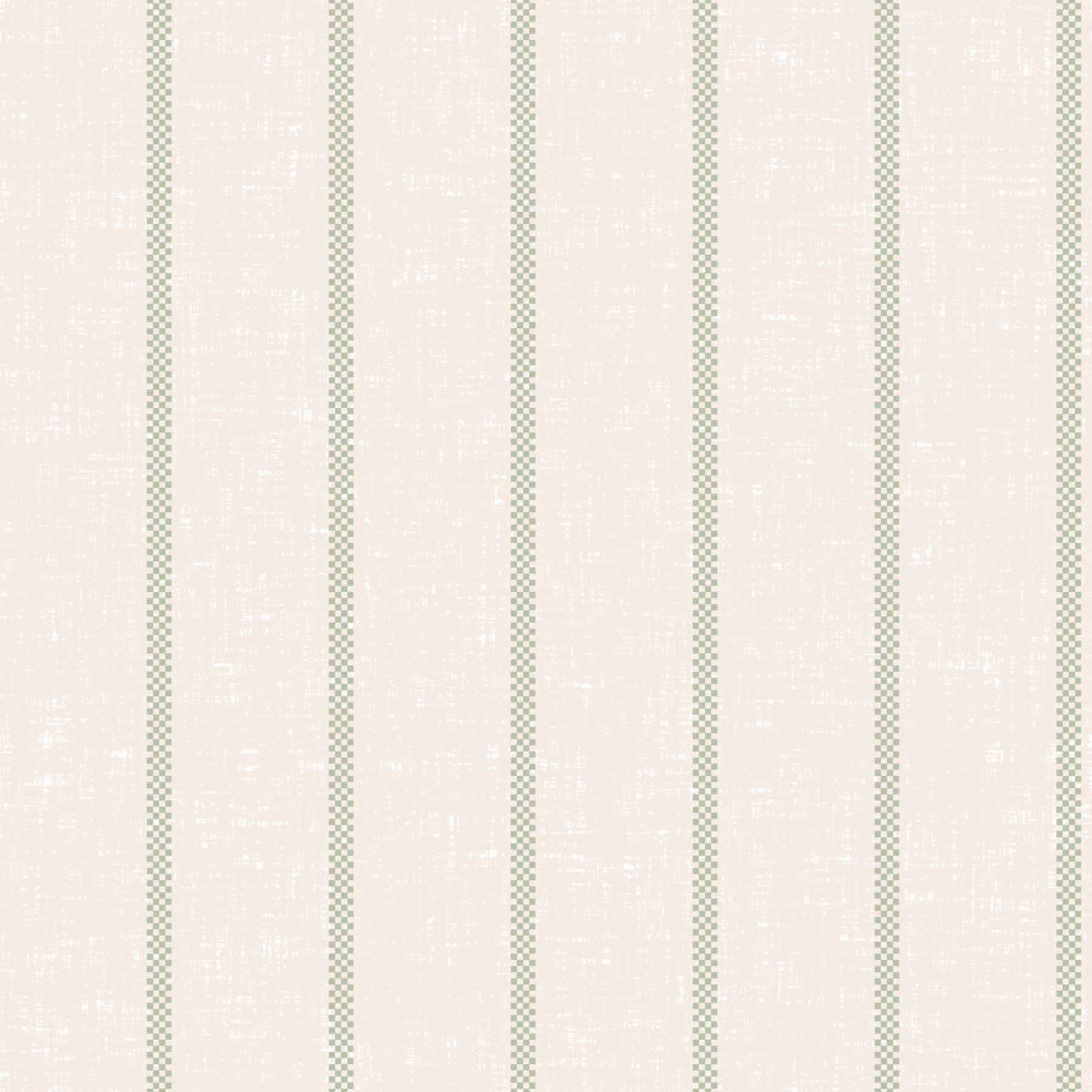 Embrace a touch of rustic charm with this 'Tea Towel Stripe - Green' wallpaper. The design evokes the simple elegance of a vintage tea towel, featuring a soft, off-white background punctuated by vertical stripes of subtly textured sage green. These stripes are composed of tiny squares, adding a delicate checkered detail. The overall effect is calming and understated, perfect for creating a serene and homely atmosphere in any room. The slightly distressed texture adds a layer of depth and authenticity, enhancing the vintage aesthetic. This wallpaper effortlessly blends modern design sensibilities with classic country charm, offering a refreshingly simple yet visually engaging backdrop for your digital devices.