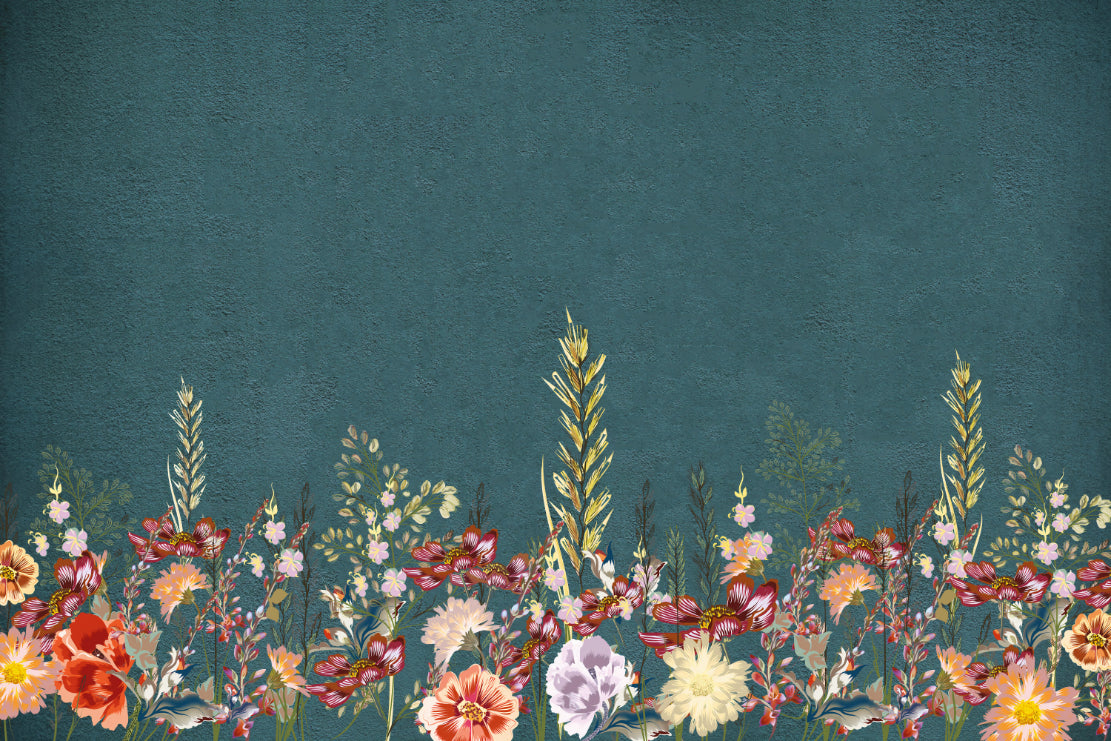 Add a touch of natural beauty with this teal botanical wildflower wallpaper, featuring delicate florals set against a rich teal backdrop. The intricate wildflower design combines earthy tones and vibrant blossoms, creating a harmonious balance of elegance and warmth. This floral wallpaper enhances any room with its artistic appeal and is ideal for bedrooms, living spaces, or creative interiors. Crafted from high-quality materials, this botanical mural ensures durability and easy application. Perfect for those seeking wildflower-inspired wallpaper, this design transforms interiors with a refined botanical touch, blending modern style with nature's timeless charm.