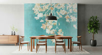Transform your living space with a breath of fresh air using this elegant wallpaper. White and beige leaf patterns delicately cascade across a textured teal backdrop, creating a serene and sophisticated aesthetic. This wallpaper for walls will effortlessly enhance bedrooms, bathrooms, or hallways. The design brings a touch of nature indoors. The calming color palette fosters a relaxed atmosphere, perfectly complementing modern, coastal, or traditional interiors with ease.