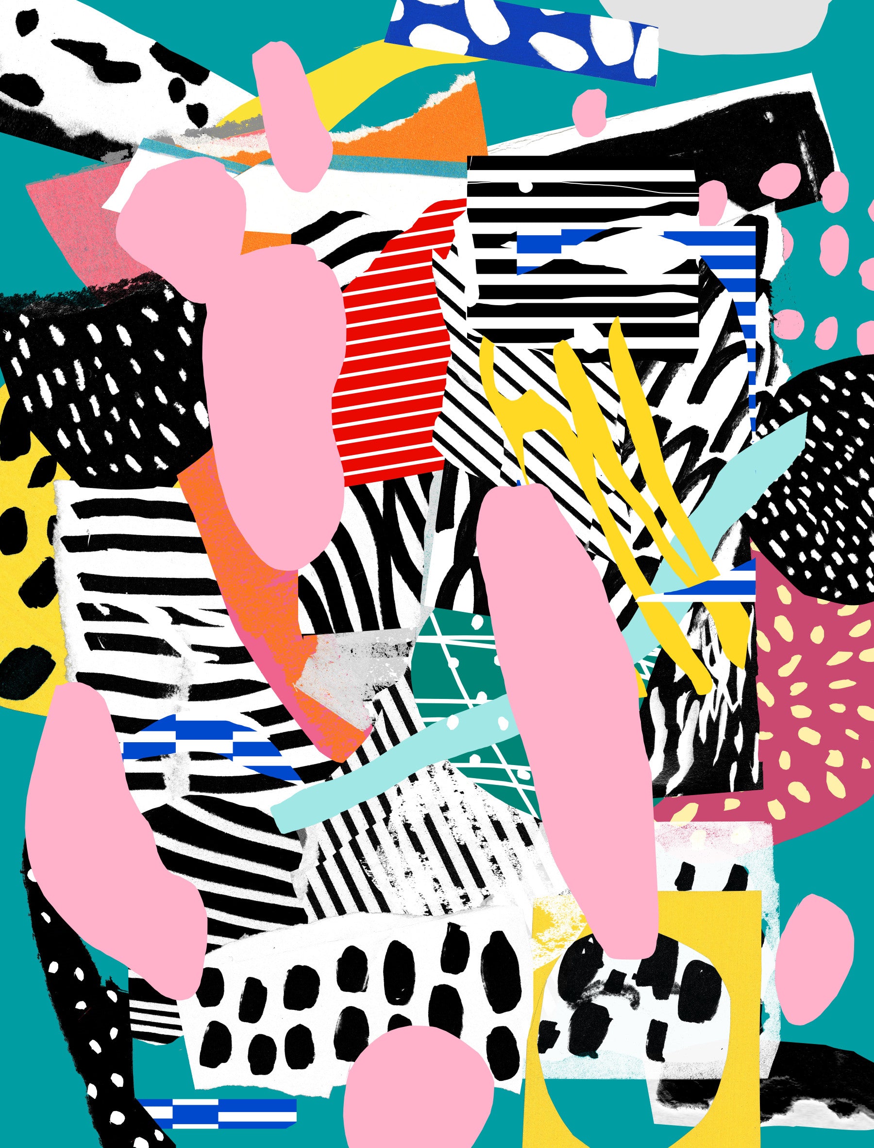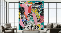 Dive into the vibrant and playful world of 'Tennis Court,' a dynamic wallpaper that captures the energetic spirit of the game. This abstract design features a collage of bold patterns and textures reminiscent of the court's diverse elements. Imagine the rhythmic stripes echoing the net, the scattered dots mirroring the bouncing balls, and the bursts of yellow and pink evoking the lively sportswear. The crisp turquoise backdrop adds a refreshing coolness, providing a clean and modern contrast to the chaotic yet harmonious composition. ‘Tennis Court’ is not just a wallpaper; it's an explosion of creativity and a celebration of athletic dynamism. Perfect for adding a splash of colour and personality to any space, this wallpaper transforms your walls into a gallery of modern art, offering a unique and inspiring aesthetic that sparks imagination and brings a touch of youthful exuberance to your everyday life.