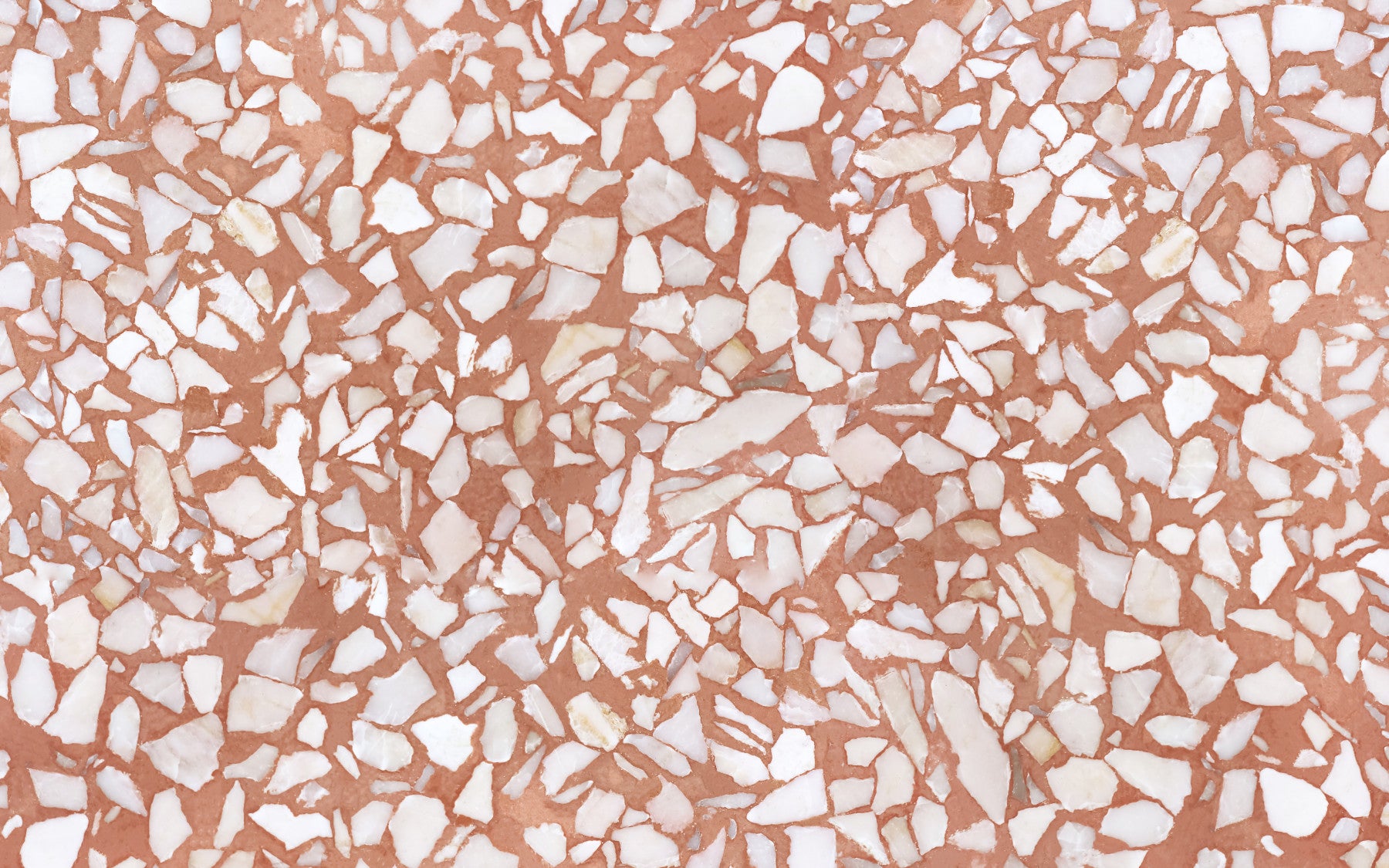 Vivid Terracotta chip Terrazzo wallpaper surface.