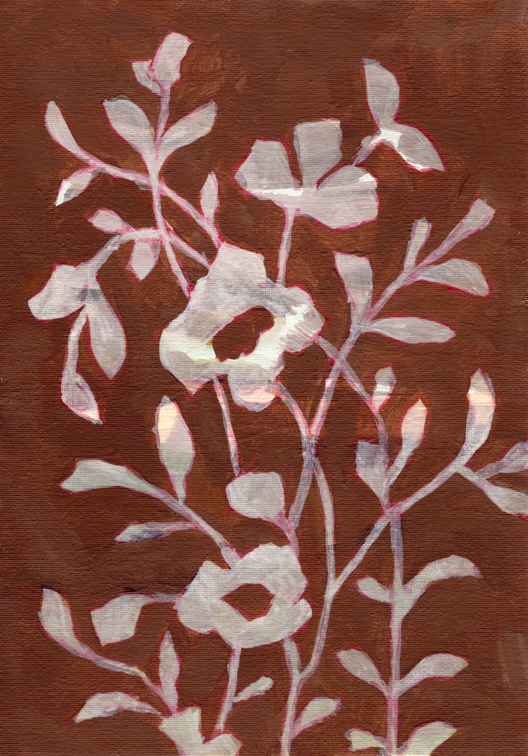 This wallpaper showcases a captivating interplay of earthy terracotta tones and delicate off-white floral motifs. The hand-painted style gives the design a unique, artistic feel, perfect for adding a touch of organic elegance to any room. The muted color palette creates a sense of calm and sophistication, ideal for bedrooms, living rooms, or even home offices seeking a tranquil atmosphere. The subtle texture of the paint adds depth, creating a visually rich yet understated design. This wallpaper brings a serene and stylish touch to any interior space.