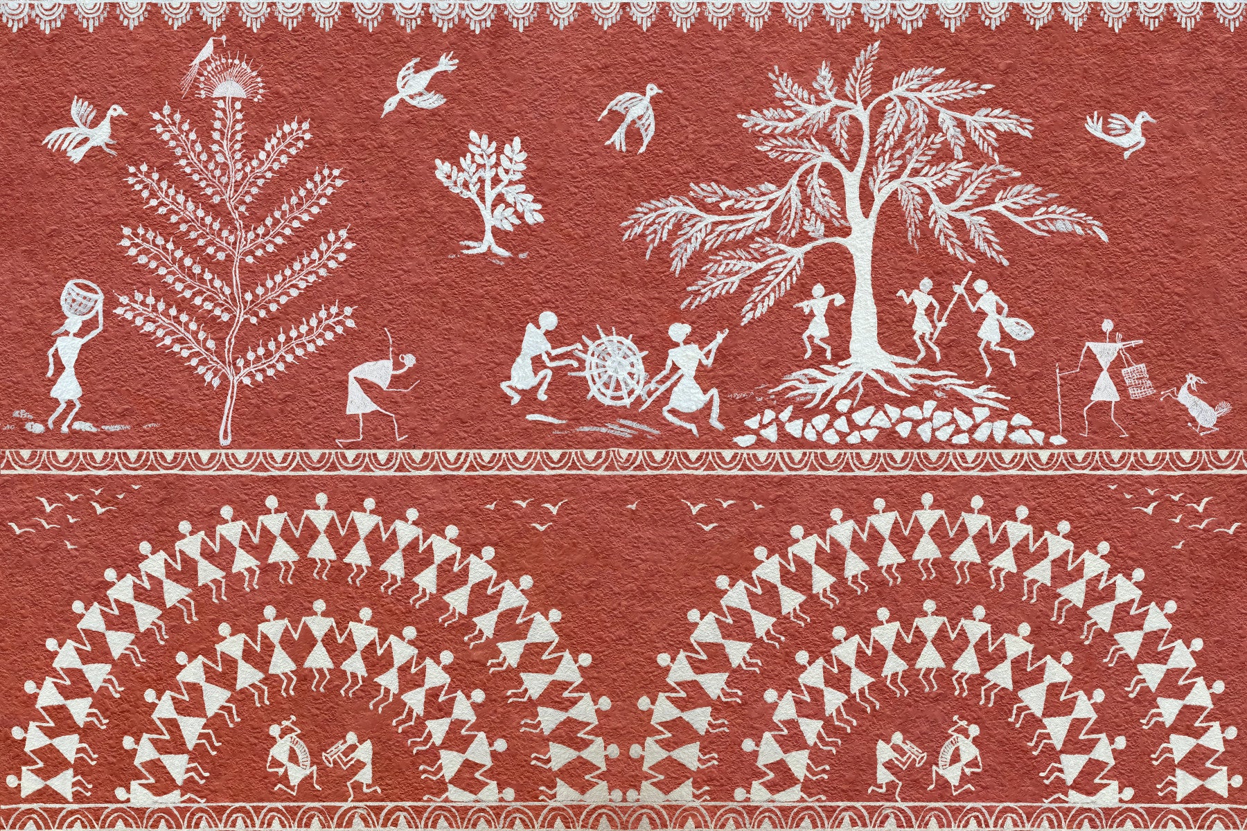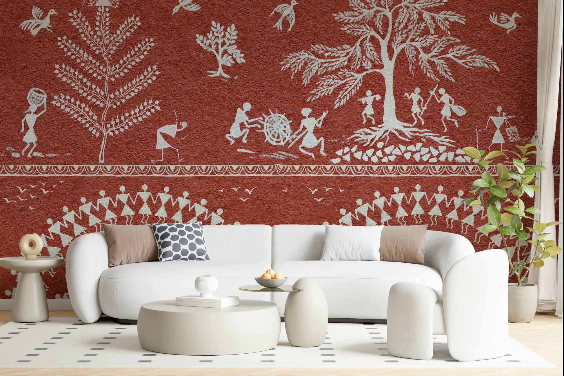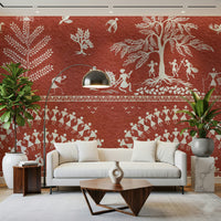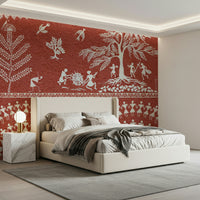 Imbue your interior with the rustic charm of tribal art using this terracotta and white wallpaper for walls. It evokes a sense of cultural heritage, making a striking statement in any room. Ideal for creating an accent wall in your study, a cozy atmosphere in your bedroom, or bringing a unique touch to your dining area, its warm color and minimalist design creates an inviting ambiance. This timeless design complements both modern and bohemian decor, adding depth and character to your space.