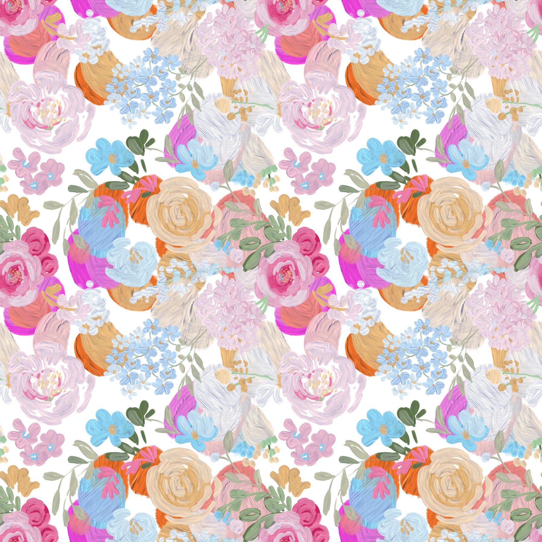 Thick oil painted spring vibe magenta floral dream pattern Wallpaper⁠