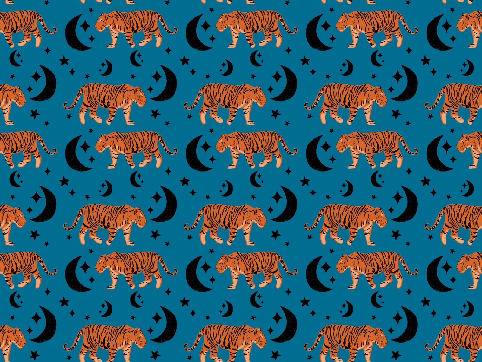 Blue tiger design Tiger Moon Blue Kids Wallpaper