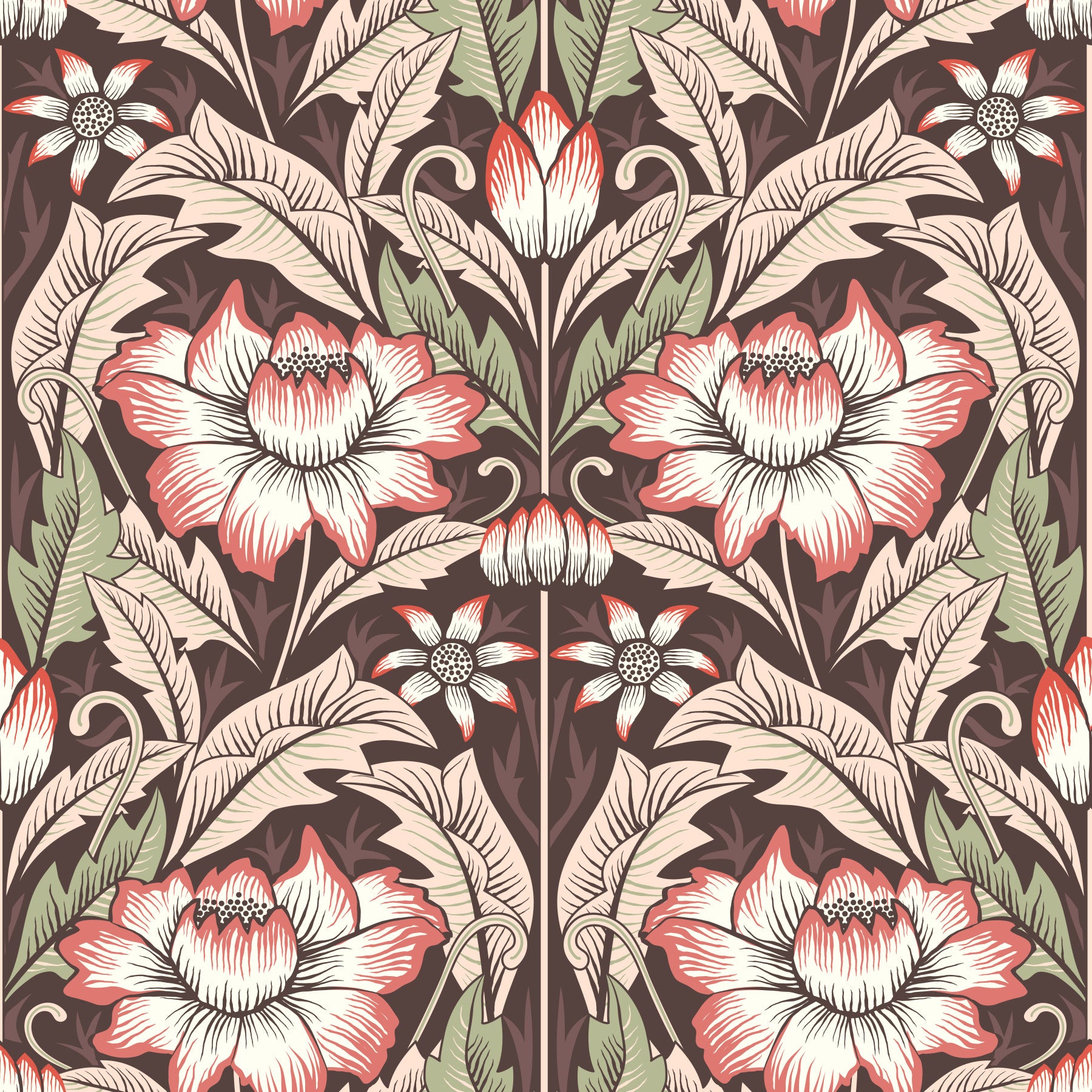 Intricate flower detail in the rich Rustic Red Wallpaper repeat pattern.