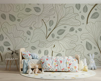 This stylish wallpaper features a seamless pattern of lined botanical shapes and scattered leaves. The muted colors, a blend of soft beige and gentle grey, lend a calm, sophisticated mood to your space. The repeating design creates an open and airy feel, suitable for any room. Use this wallpaper for walls to create a feature wall in a living room, bedroom, or hallway. It offers a modern, elegant look that enhances your interiors.