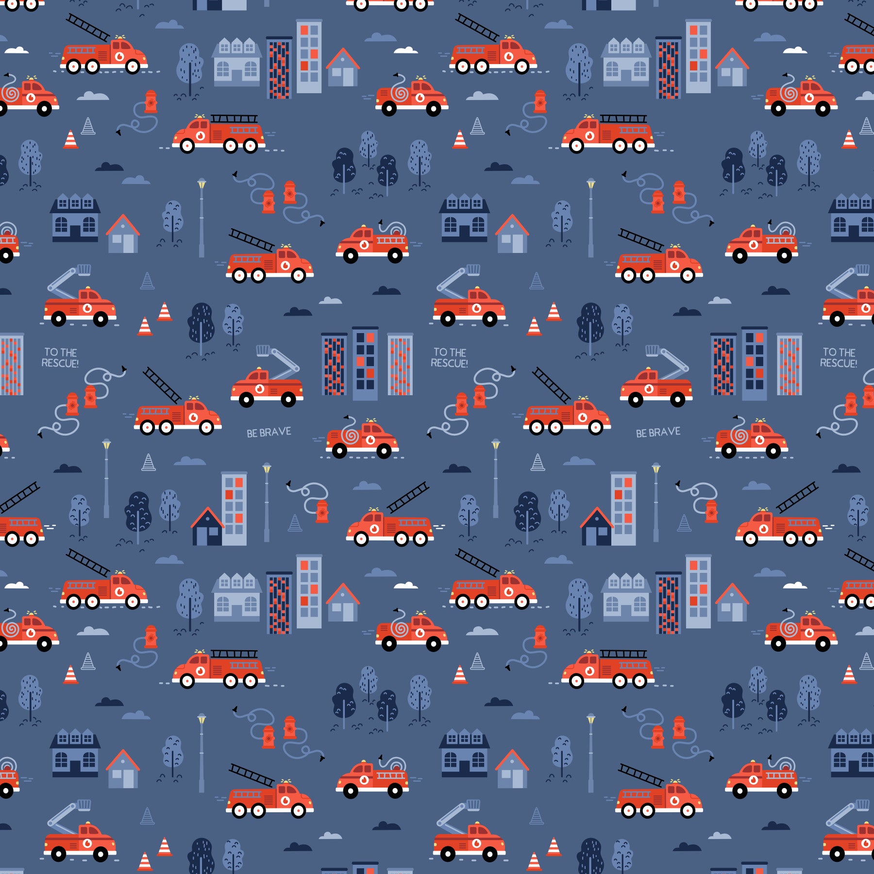fire truck scene on navy wallpaper