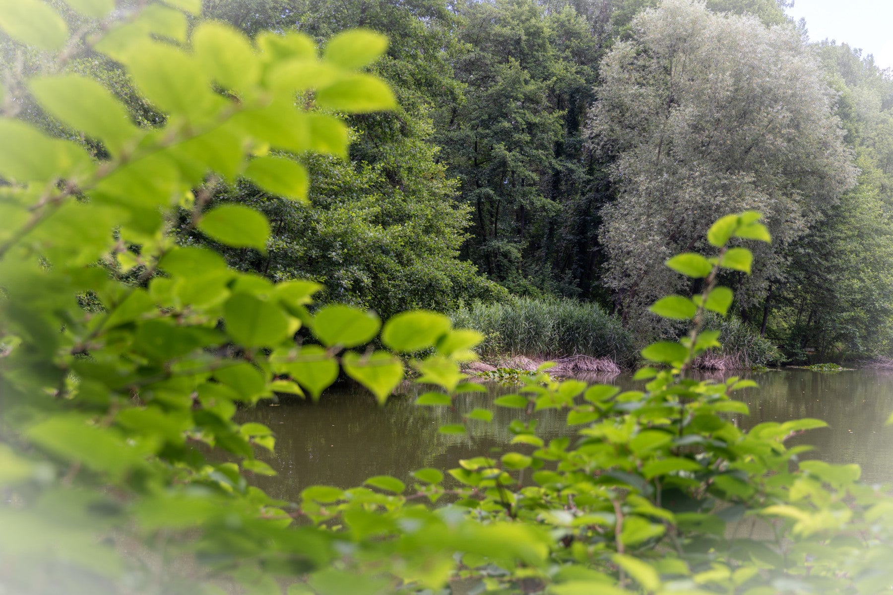 Tranquil Nature Scene with Lush Green Foliage and Serene Waters Wall Mural