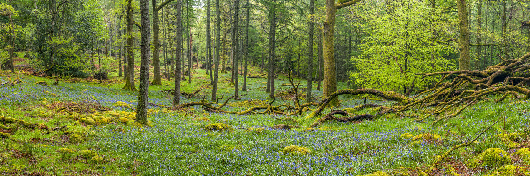 A peaceful wall mural with a forest scene.