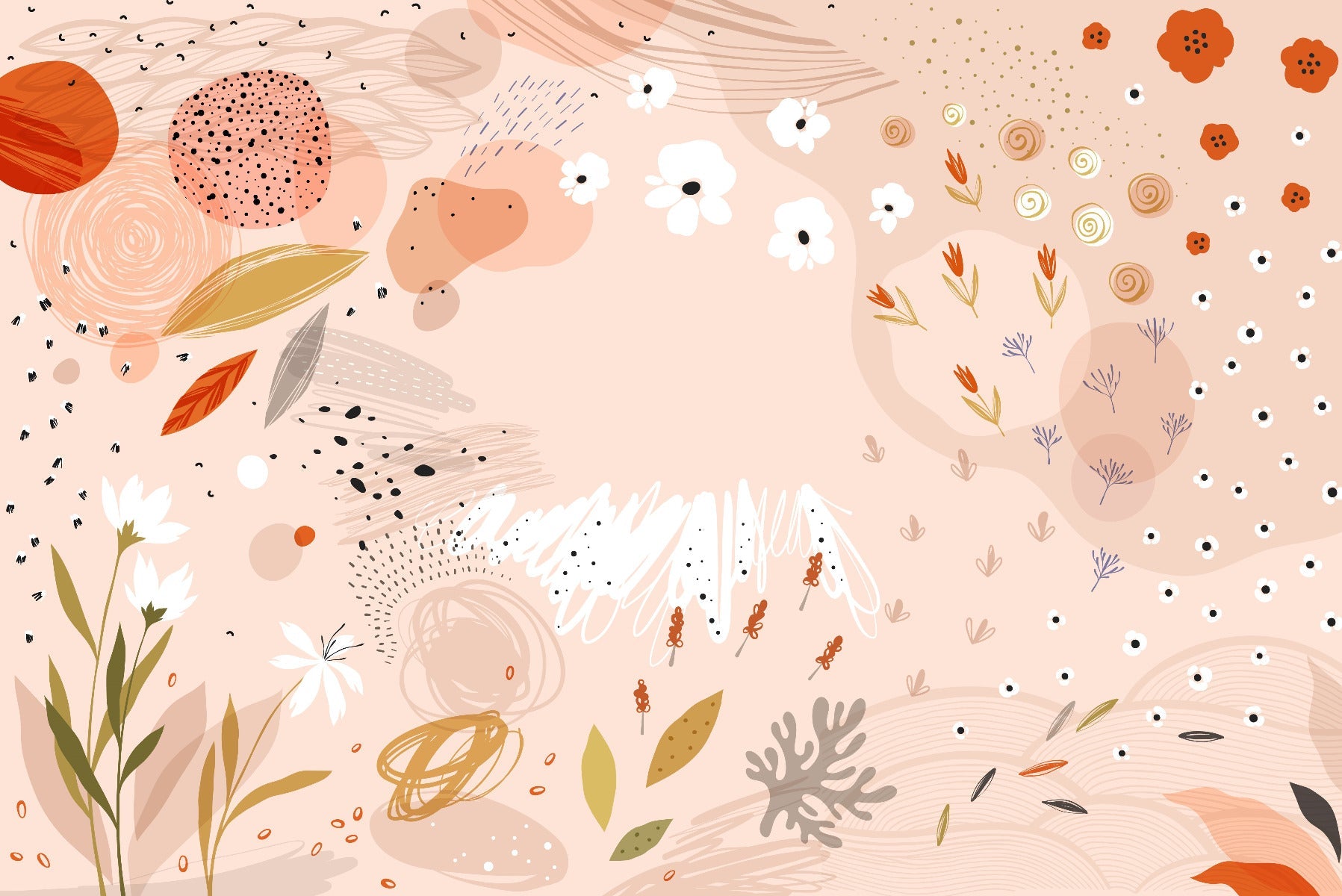 Trendy Abstract Floral Art Wallpaper Mural - Giffywalls