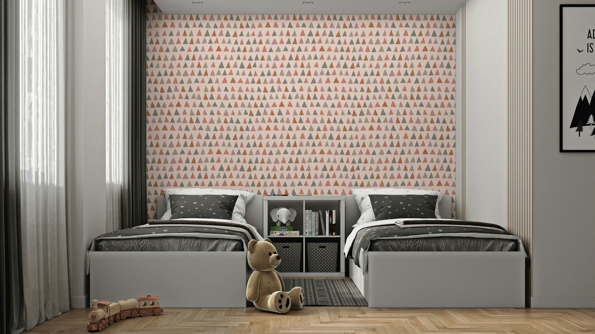 Nature-inspired triangle wall mural for kids