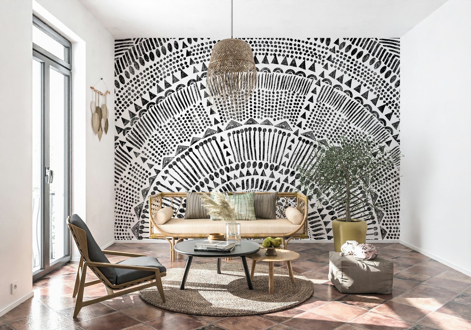 Bring a touch of global elegance to your home with this striking tribal half sun design wallpaper. Featuring bold geometric patterns and intricate details, this design infuses any room with a sense of warmth and cultural richness. Perfect for creating a focal point in living rooms, bedrooms, or study areas, this wallpaper complements a variety of interior styles. Transform your space with a hint of tribal artistry and let the patterns tell a timeless story.