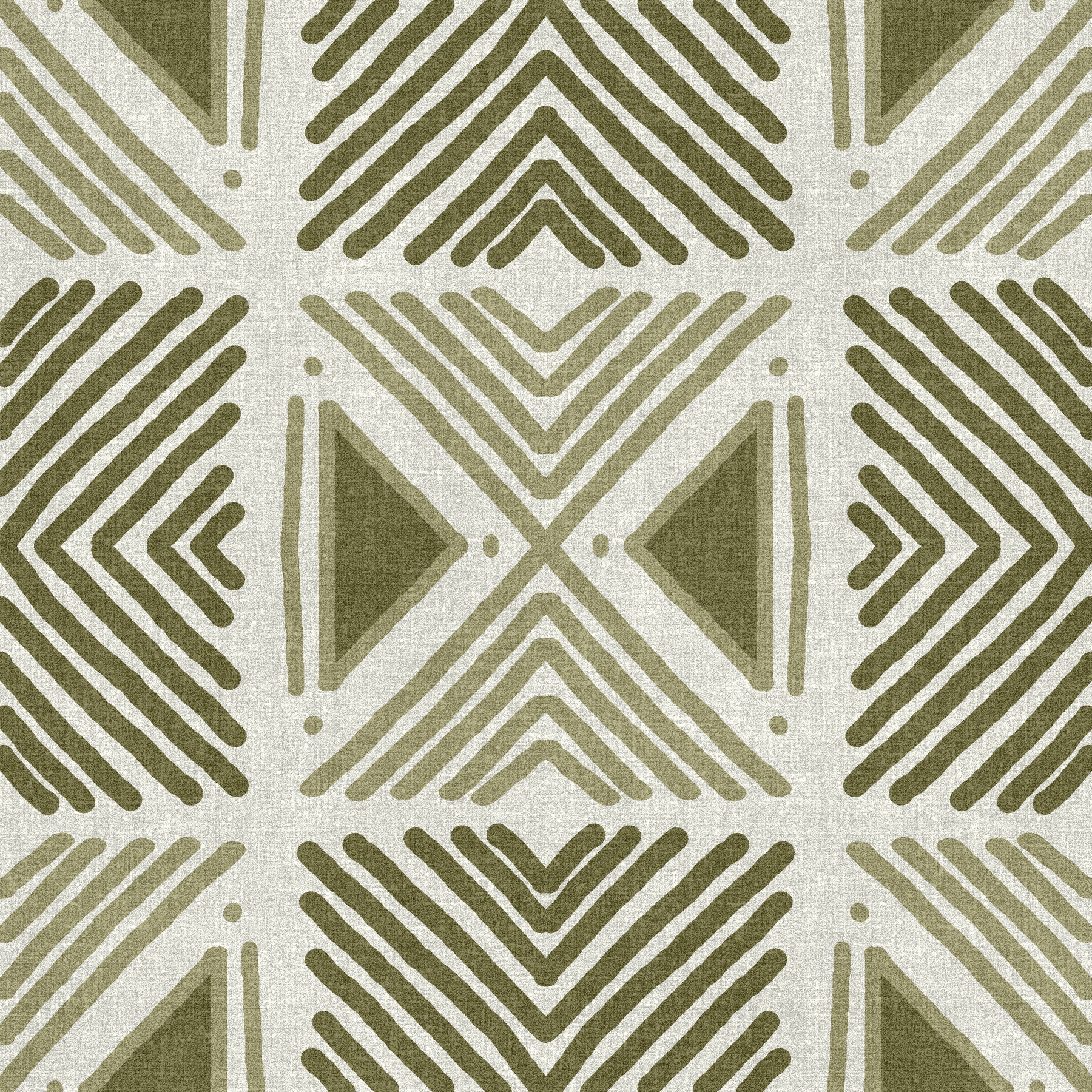 Olive green geometric Tribal Herbs Motif Wallpaper decor