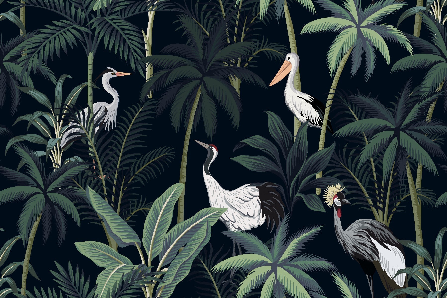 Tropical Birds In Night Sky Wallpaper Mural - Giffywalls