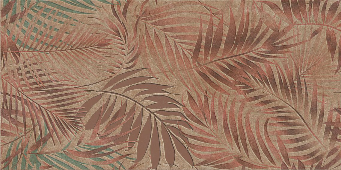 Tropical mural with copper and earthy leaves