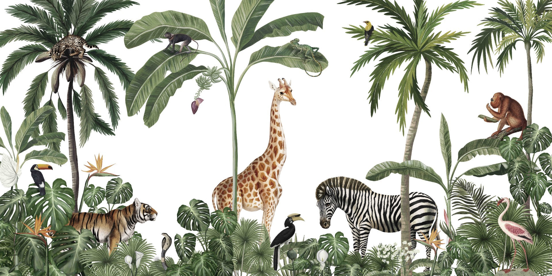 Tropical forest animals jungle theme wallpaper decor