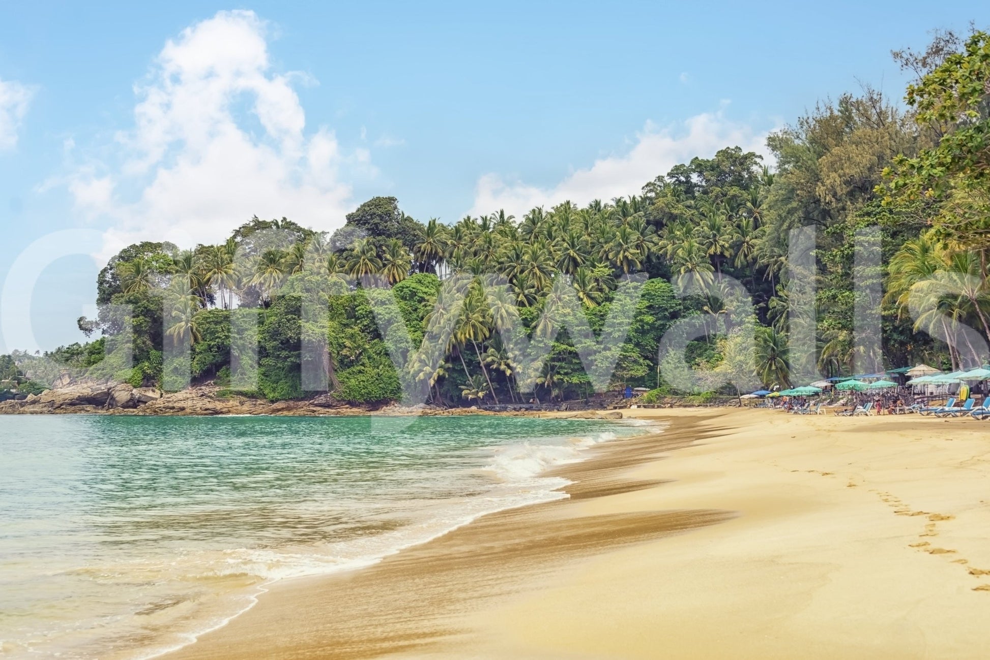 Transform your living space into a tranquil escape with this vibrant beach wallpaper for walls. The lush, green palms against the soft blue sky evoke a sense of serenity and calm. The warm sandy beach tones bring a natural, grounded feel to any room. Ideal for a bedroom, living room, or even a bathroom, this design offers a refreshing ambiance. The naturalistic details and inviting color palette will complement coastal, tropical, or bohemian interior styles. Embrace the essence of an island paradise and create a stunning focal point in your home.