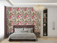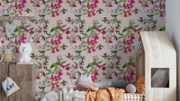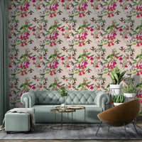 Experience the rhythm of the tropics with this stunning wallpaper. A symphony of vibrant colors—fuchsia, orange, and deep greens—explodes across the canvas, showcasing a dynamic interplay between exquisite blossoms and graceful hummingbirds in flight. The watercolor artistry captures the delicate details of both flora and fauna, imbuing the design with a lively energy and captivating charm. This piece is perfect for adding a touch of exuberant tropical flair to any room in your home, creating a lively and visually stunning atmosphere.