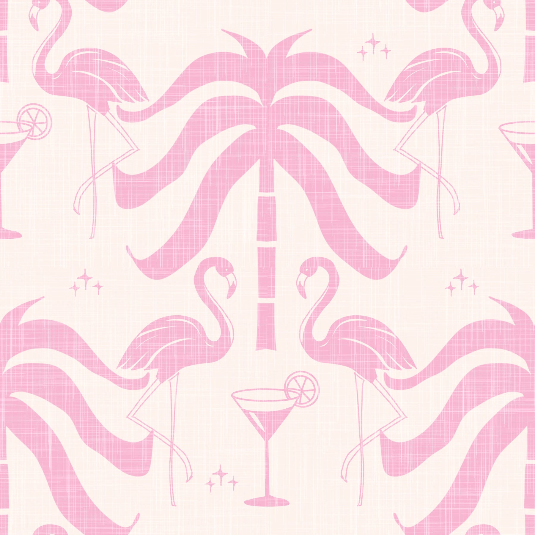 Escape to a sun-drenched paradise with the Tropical Palm Springs Flamingo Beige Pink wallpaper. This delightful design evokes the retro glamour of Palm Springs, blending a soft beige background with playful pink accents. Graceful flamingos strike elegant poses amidst stylized palm trees, creating a whimsical and sophisticated scene. Dotted throughout the design are cocktails adorned with lemon slices, and little stars that add a hint of sparkle, reinforcing the celebratory vibe. The subtle linen-like texture gives the wallpaper a tactile, inviting feel, ensuring it complements a variety of interior styles. Perfect for adding a touch of vintage charm and a splash of tropical flair to any room, this wallpaper transforms your space into a chic, relaxing oasis. Embrace the leisurely spirit and vibrant energy of Palm Springs with this captivating wallpaper.