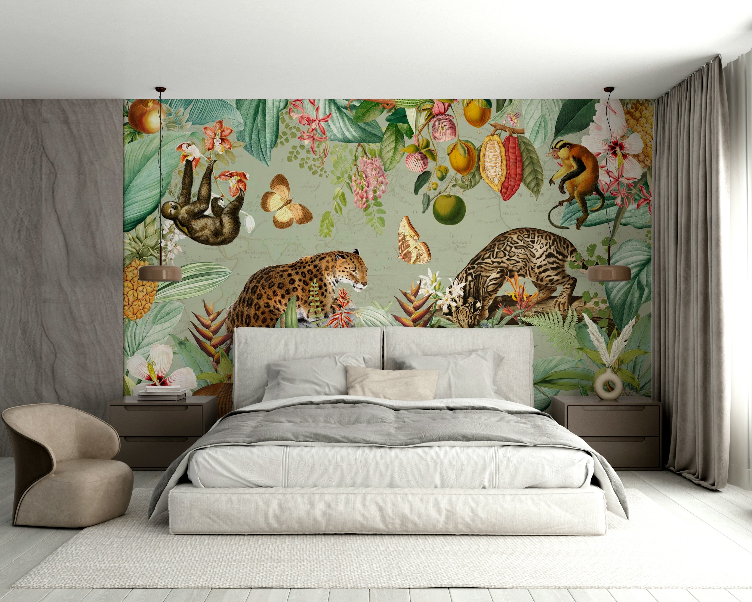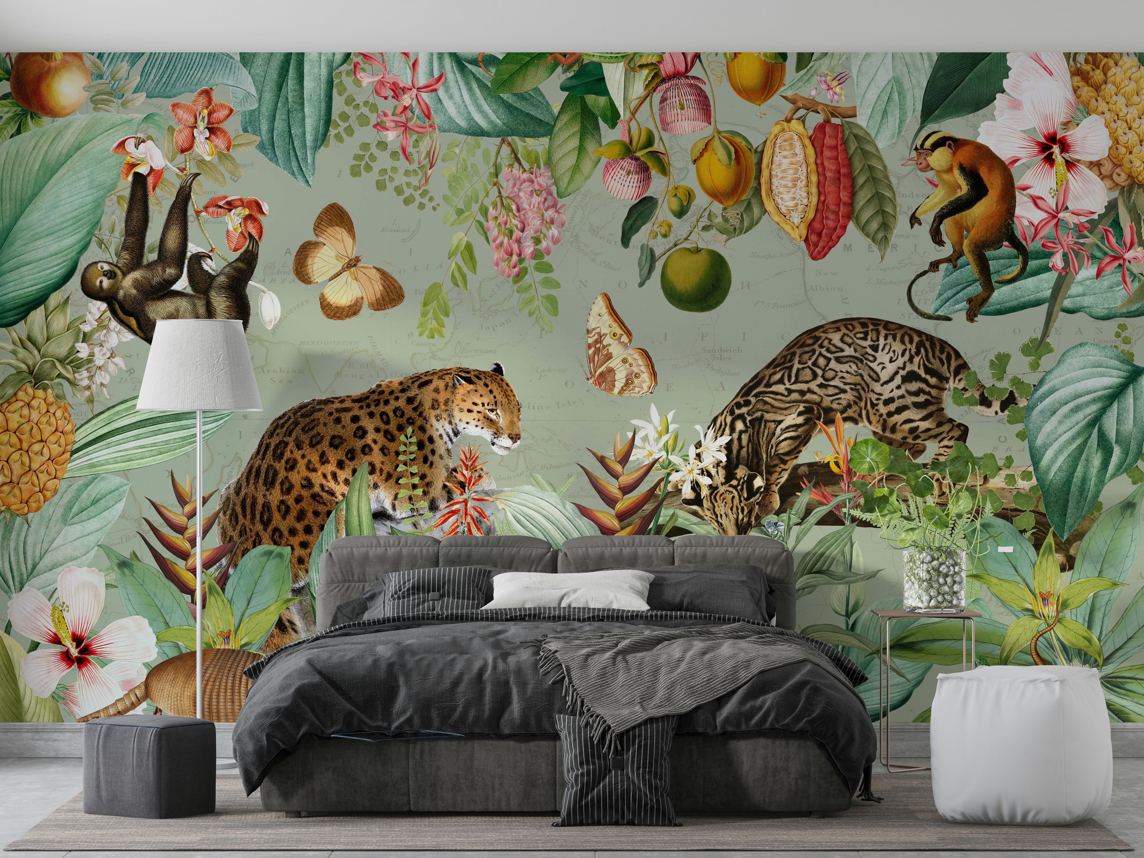 Tropical jungle-inspired vintage wall mural for a unique look.