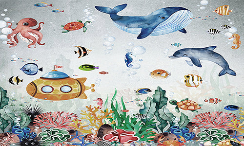 The ocean has appealed to the hearts and minds of people of every age, but most of all, children. Using the Ocean Adventure kids room wallpaper, you can move the magic of the ocean floor into your child's nursery. The wallpaper contains a wide variety of marine animals, from graceful whales to frolicking dolphins, all of them swimming in nature. Because the turquoise and green have a calming effect, they create a quiet space where your babies can relax into a peaceful slumber. Create a magical underwater world in the kids' room and give their imaginations free rein.