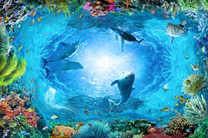 Underwater Landscape Aqua Blue Color Dolphin Wallpaper - Giffywalls
