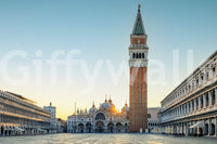 Transform your space with the timeless beauty of Venice. This wallpaper for walls captures the grandeur of St. Mark's Square at dawn, where soft golden light bathes architectural marvels. The design brings a touch of Italian elegance to your dining room, hallway or living room. The calming blue and subtle warm tones creates a serene ambiance and complements both modern and classic interiors. Install this wallpaper to infuse your home with the romance and history of one of the world's most cherished cities, enhancing your wall decor effortlessly.
