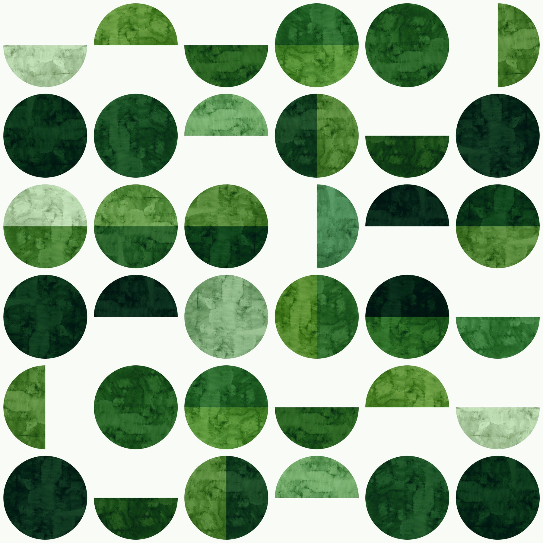 Embrace the calming allure of nature with this circular motif wallpaper. The varying shades of green create a dynamic yet soothing visual experience. The watercolor texture adds depth and interest to the geometric design. This wallpaper for walls works well in living rooms, bedrooms, or even a home office, bringing a sense of tranquility and organic charm. Its simple yet sophisticated pattern is perfectly for a minimalist or Scandinavian-inspired interior.