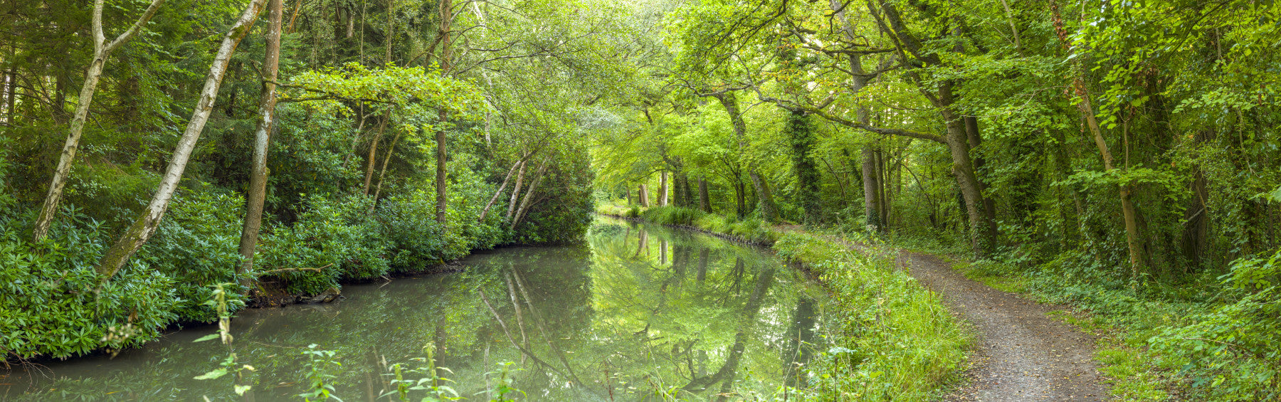Wide panoramic Verdant Stream Escape Wall Mural wall art.