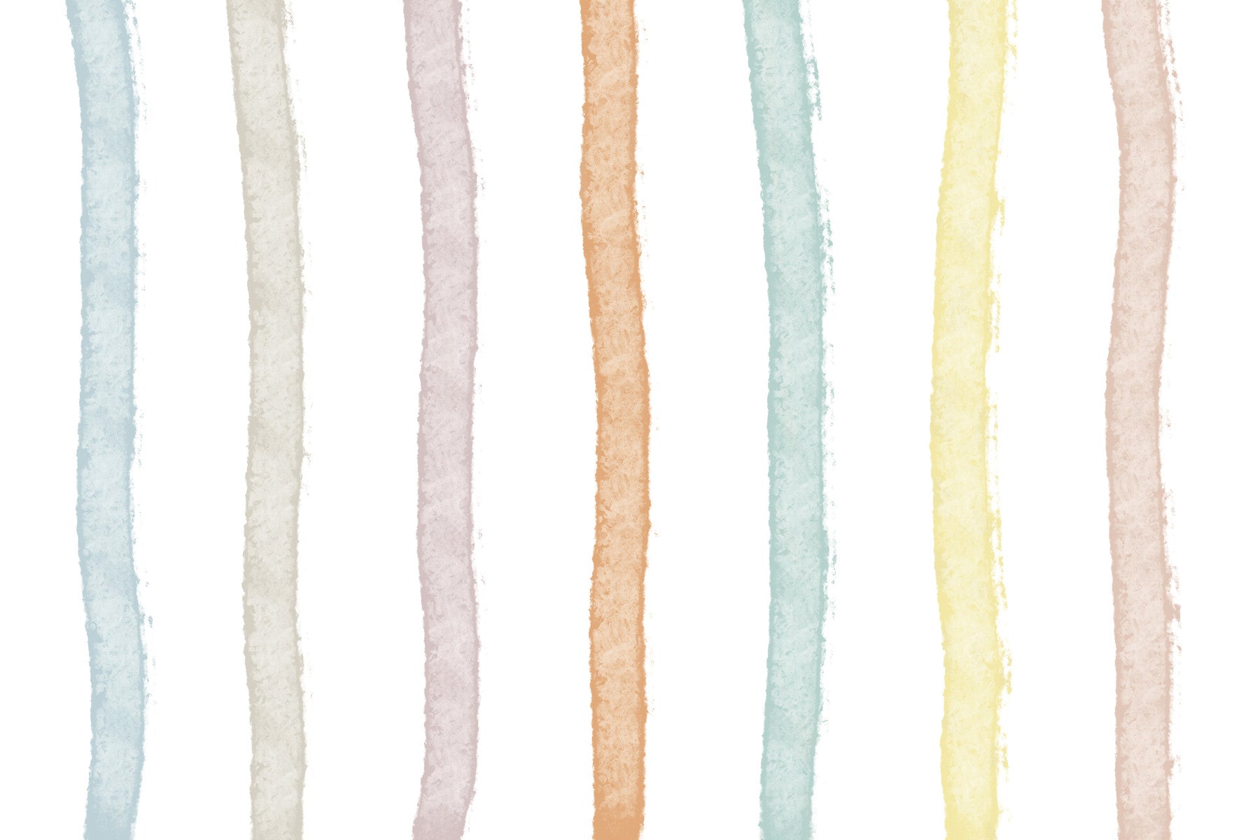 This wallpaper showcases delicate watercolor stripes in a variety of soft shades. Pastel blues, creams, peaches, yellows, and pinks blend harmoniously. Perfect for creating a soothing atmosphere in a bedroom or nursery. The texture of the brushstrokes adds an artistic touch. This wallpaper for walls is easy to install and delivers visual appeal without being overwhelming. Its versatile design complements a range of décor, from boho to minimalist. It softly enhances the interior, introducing a quiet charm.