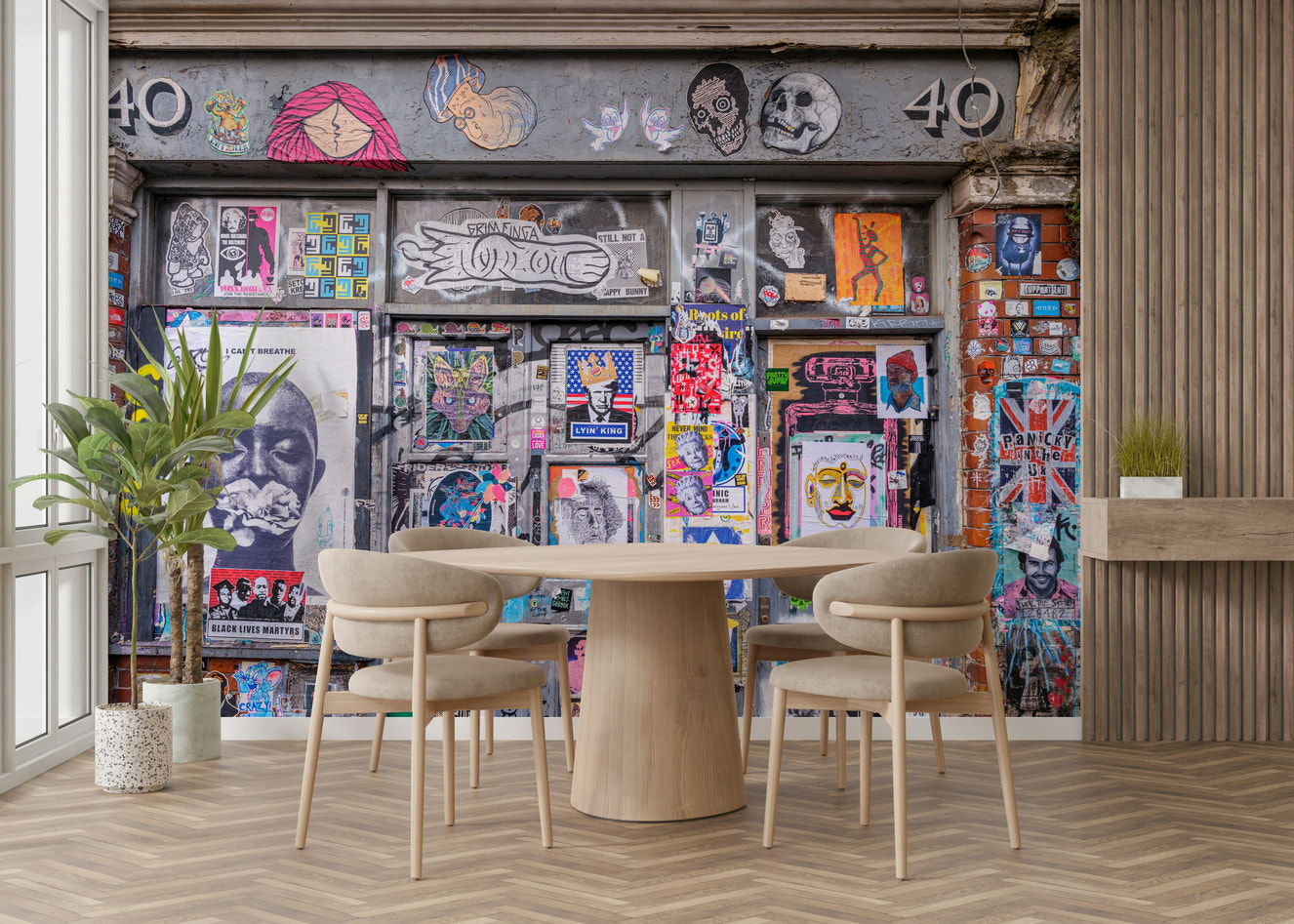 Dynamic graffiti splash wallpaper for contemporary interiors.