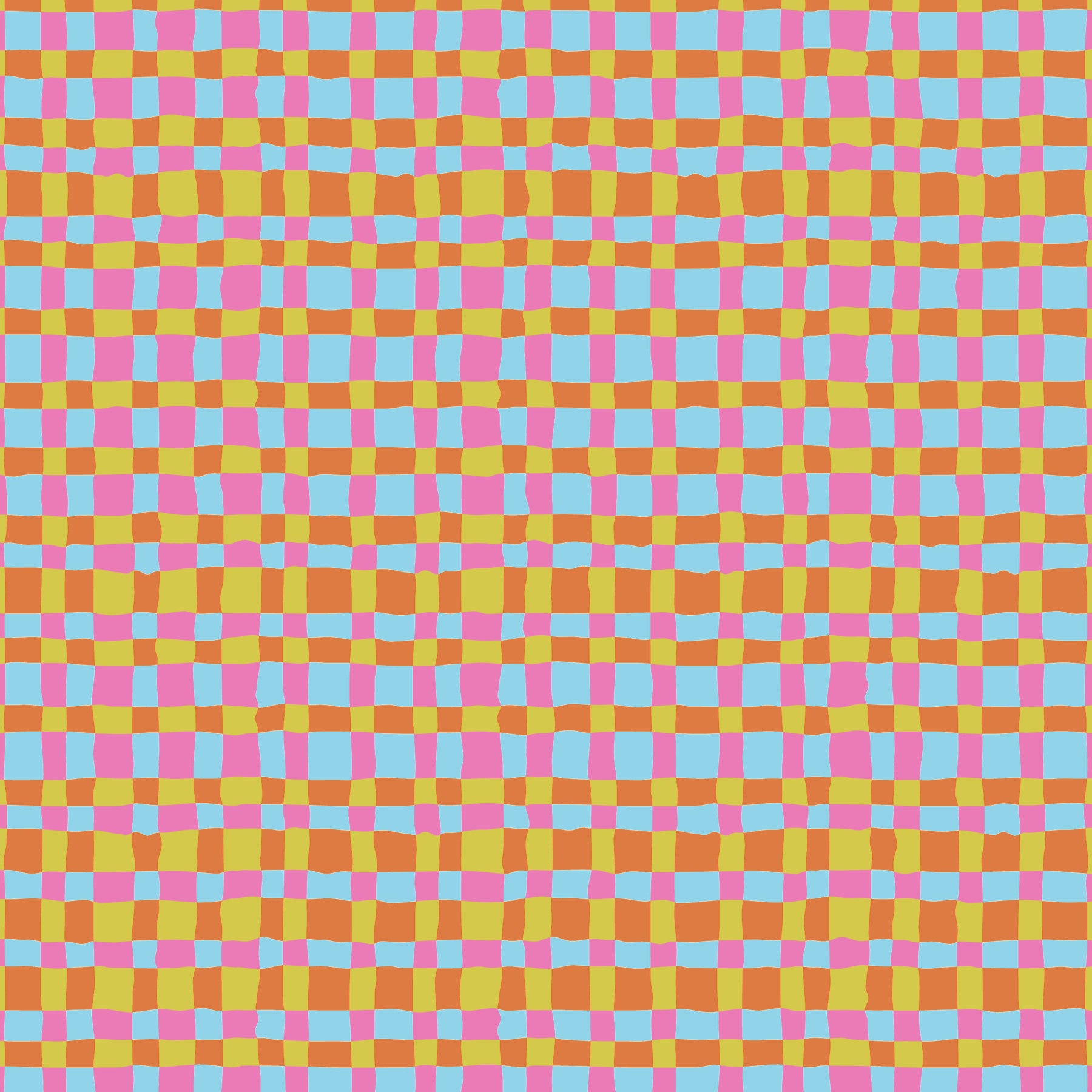 Cheerful wall mural featuring hand-drawn gingham style checkered pattern.