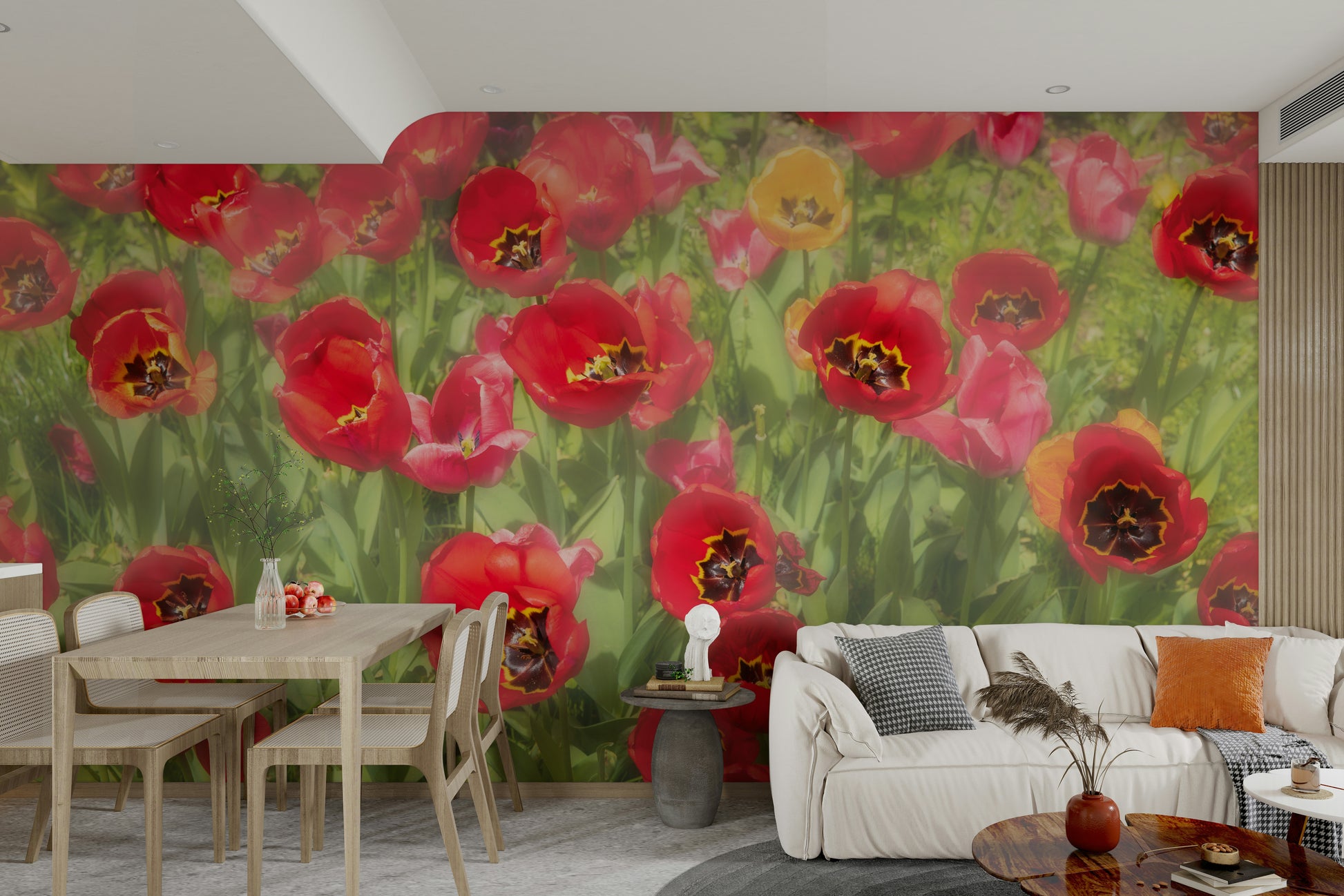 Vibrant Red Tulip Field Photography | Floral Wall Art | Nature Decor Wall Mural